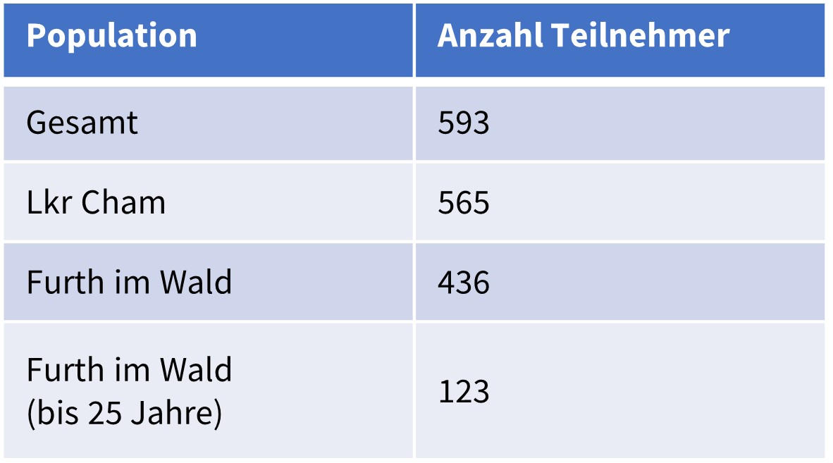 Circa 3/4 der Teilnehmer*innen sind aus Furth im Wald, ein weiterer Anteil aus dem näheren Einzugsgebiet und ein ebenso großer Rest aus dem ganzen Landkreis.