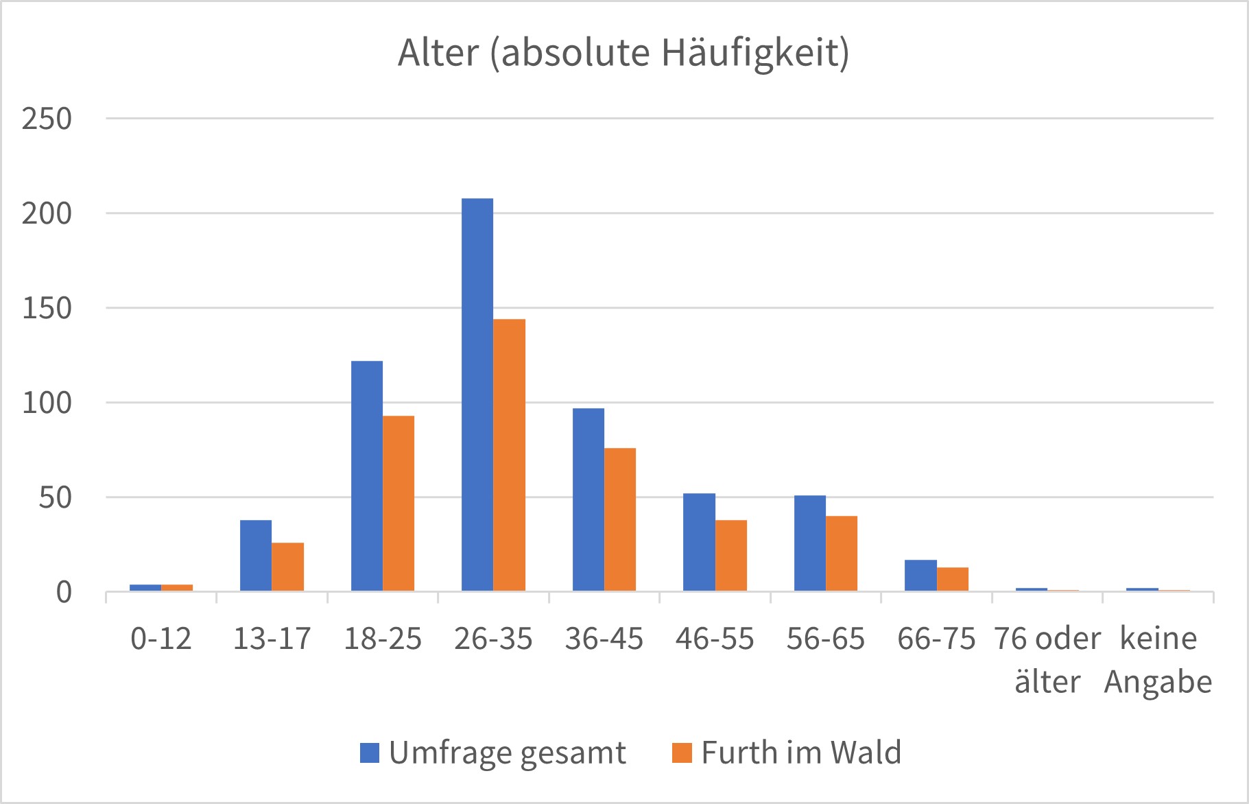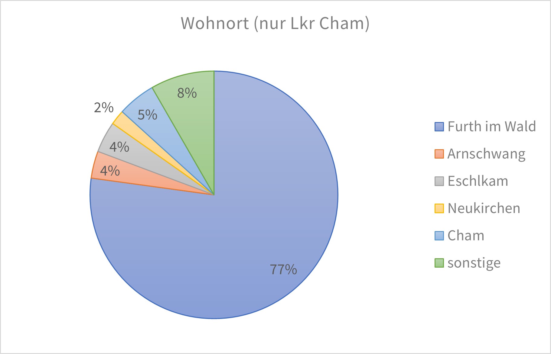 Bei unserer Umfrage haben fast 600 Personen teilgenommen. Die Verteilung zeigt, dass wir überwiegend Personen aus Furth im Wald erreicht haben, jedoch auch einige aus dem Landkreis.