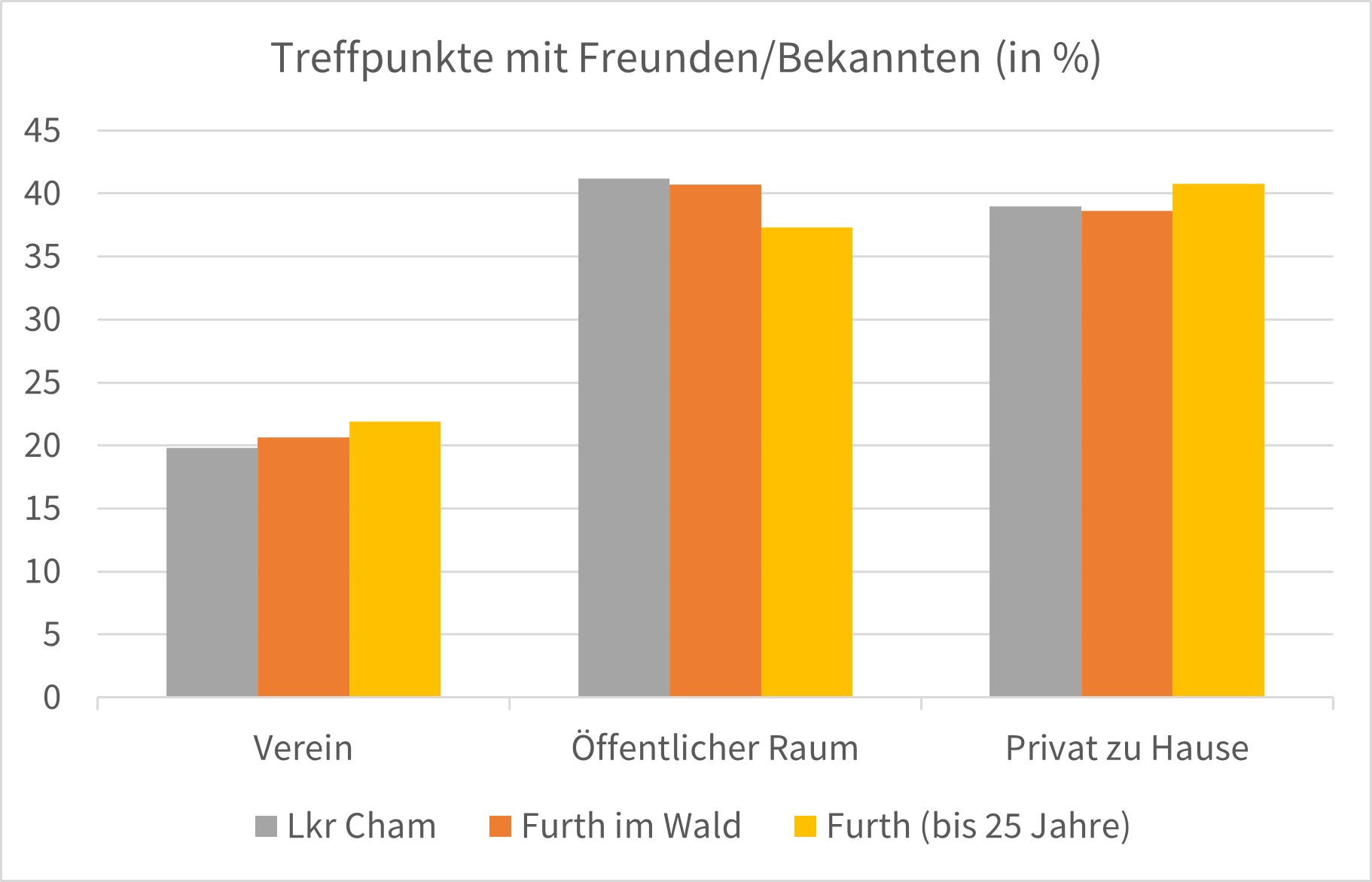 Die meisten Bürger*innen treffen sich in der Zeit außerhalb von Kontaktbeschränkungen entweder im Privaten oder im öffentlichen Raum. Circa 20% treffen sich überwiegend in Vereinen.