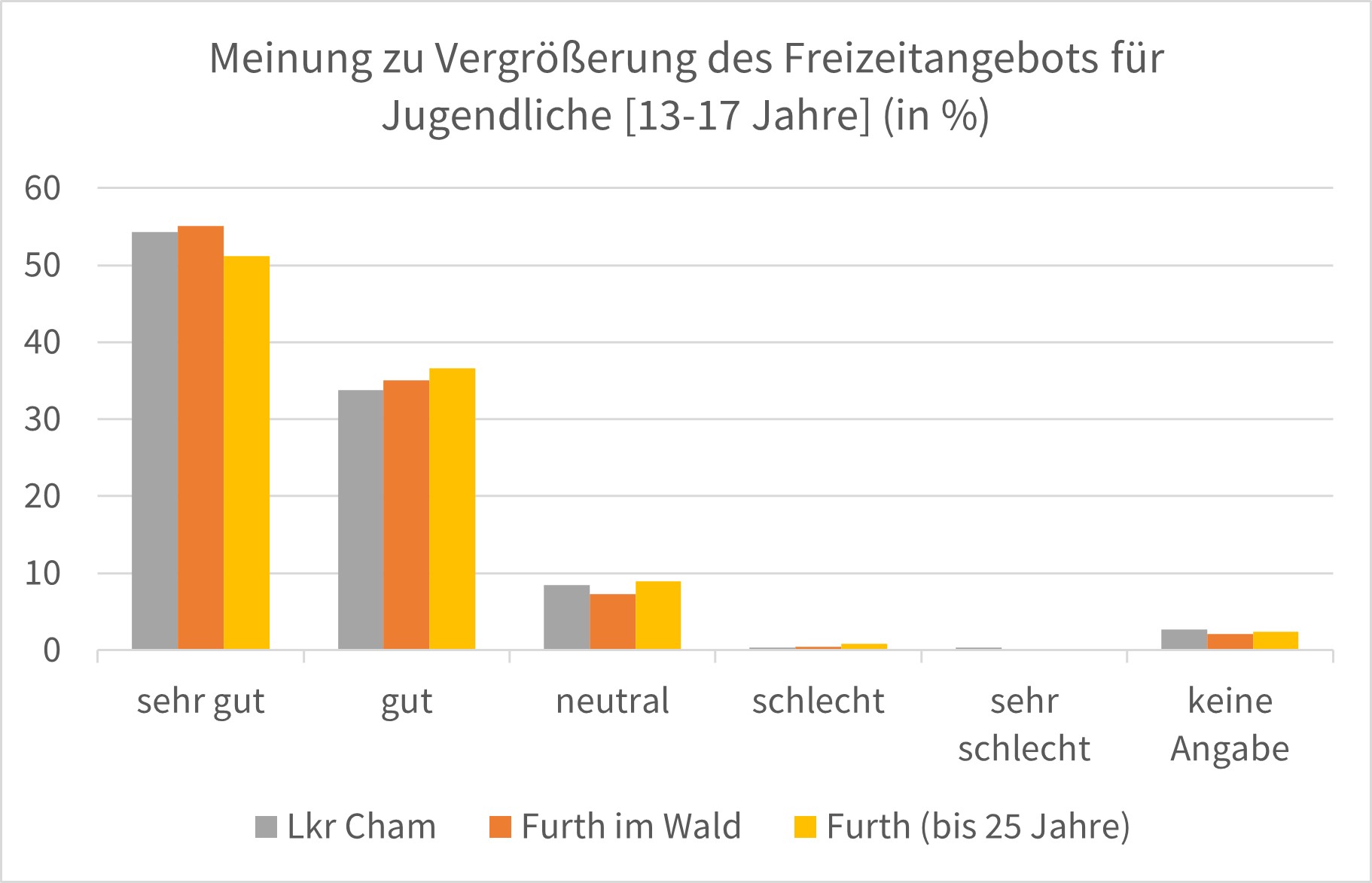 Bei den Freizeitbeschäftigungen für Jugendliche im Alter von 13-17 Jahren sehen die Befragten einen deutlichen Aufholbedarf. Dieses Angebot muss deutlich erweitert werden.